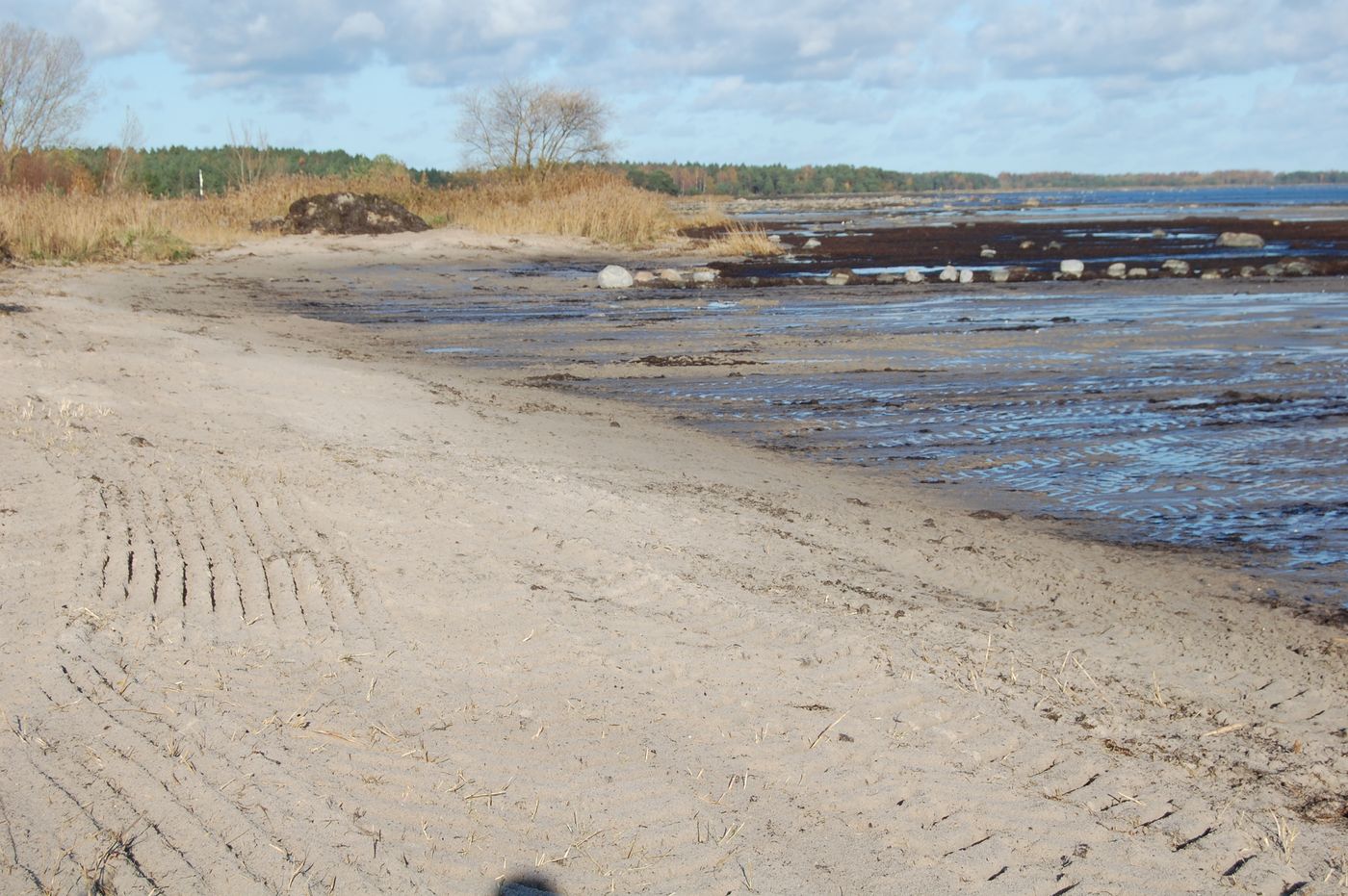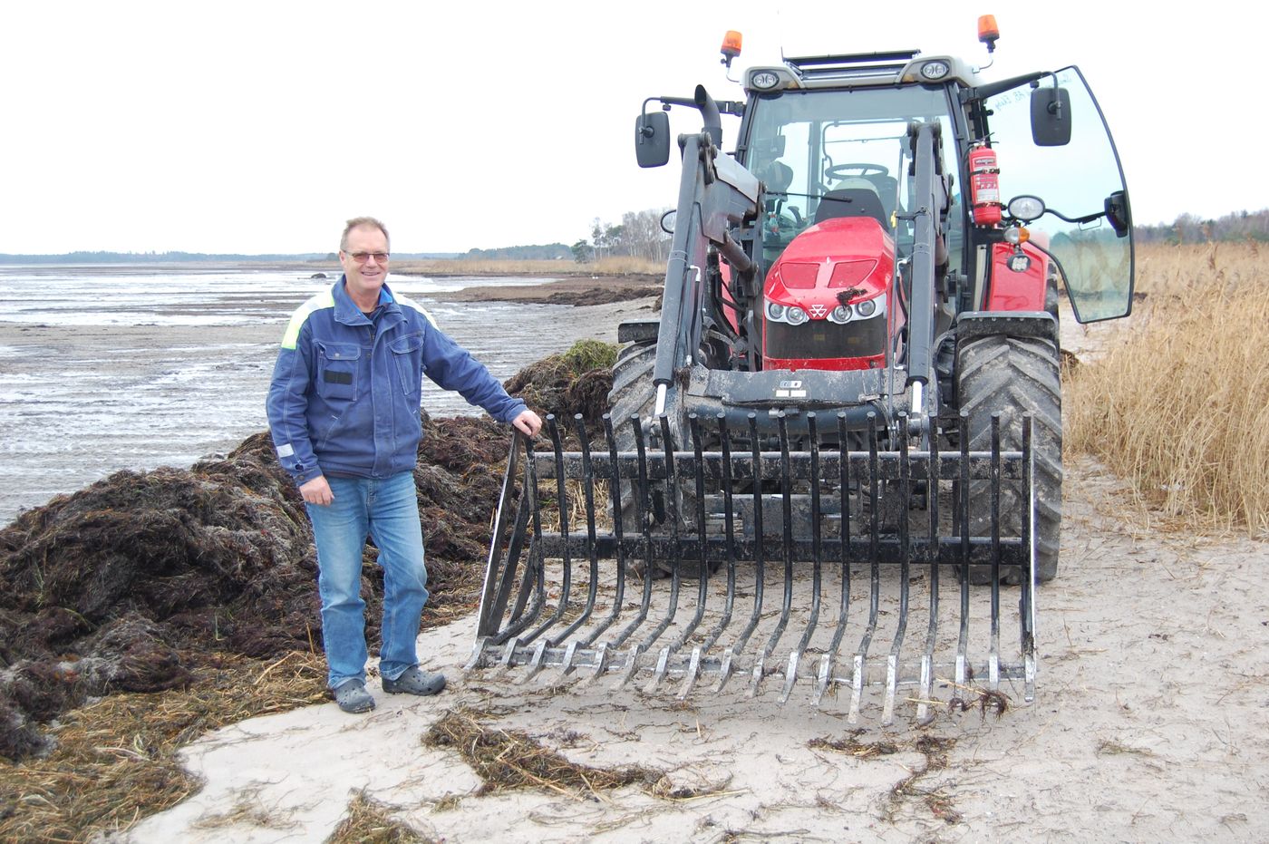 Vid två tillfällen i höst har Ulf Smedberg från Ekeby rensat badstränderna vid Lausviken fria från släke. Det har blåst in ganska mycket, men det tog Smedberg bort alltihop på ett förnämligt sätt. Det är en fördel om det är lågvatten, se en avbilderna med stor rengjordsandyta. Se på en annan där man ser skillnaden mellan den rengjorda stranden och den släkfyllda! Om vindarna håller sig på västen hela vintern, kan vi har en släkfri strand i vår. Om inte, får Smedberg komma tillbaka. Det är Lau Strandförening som ordnar med detta. Vi andra rensningstillfället i november kom årets sista ? picknickgäng till stranden med välfyllda matkorgar. Det var en fin dag, men ändå brakallt för picknick på stranden! Se bild!