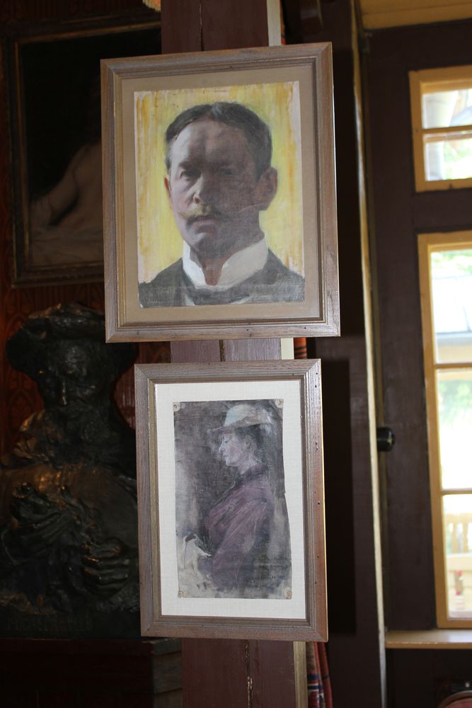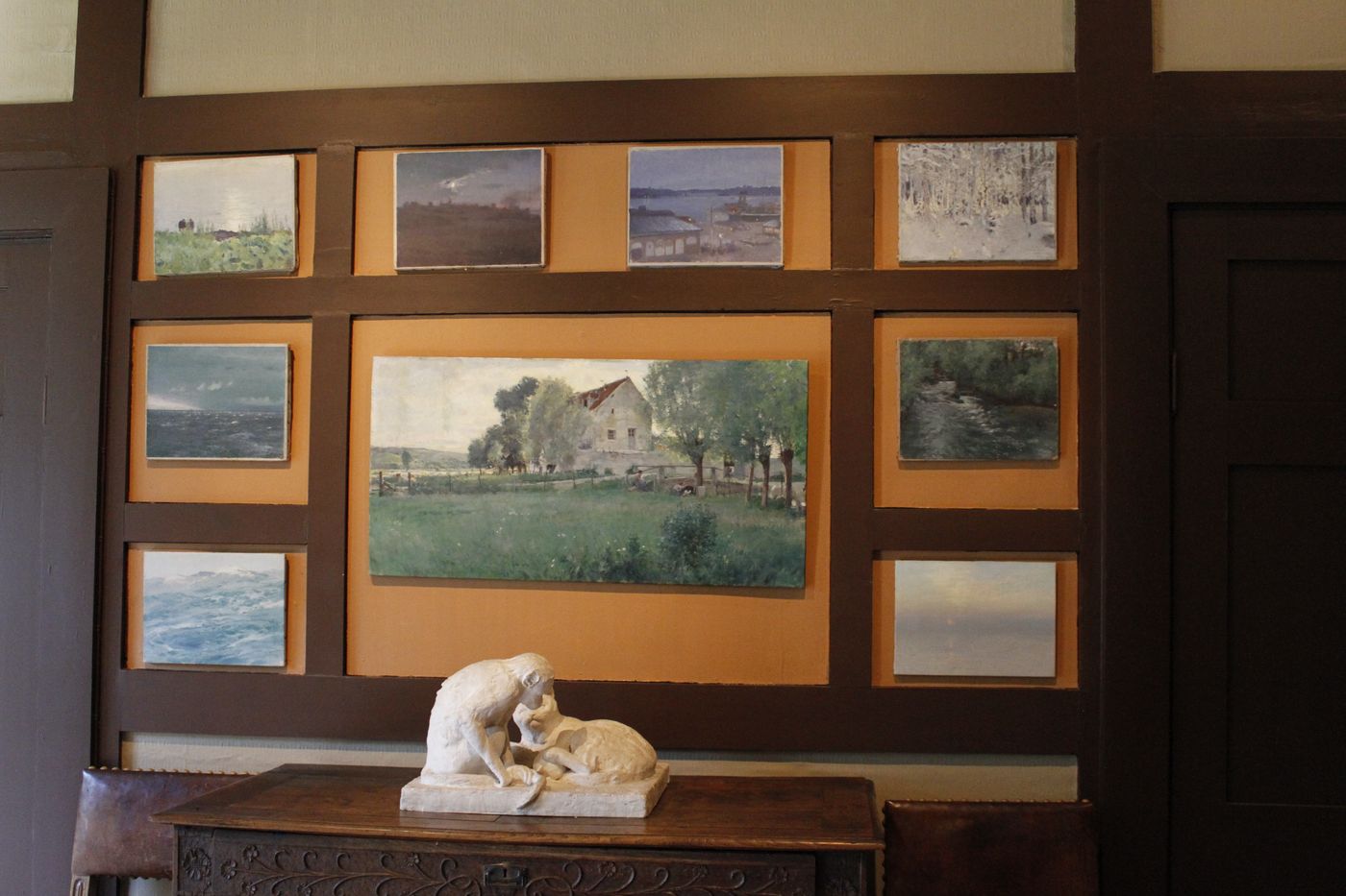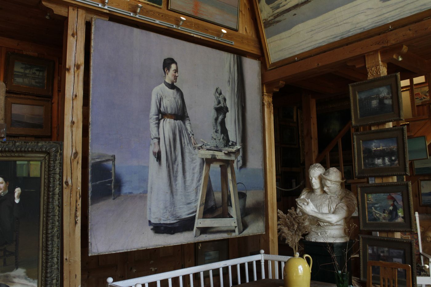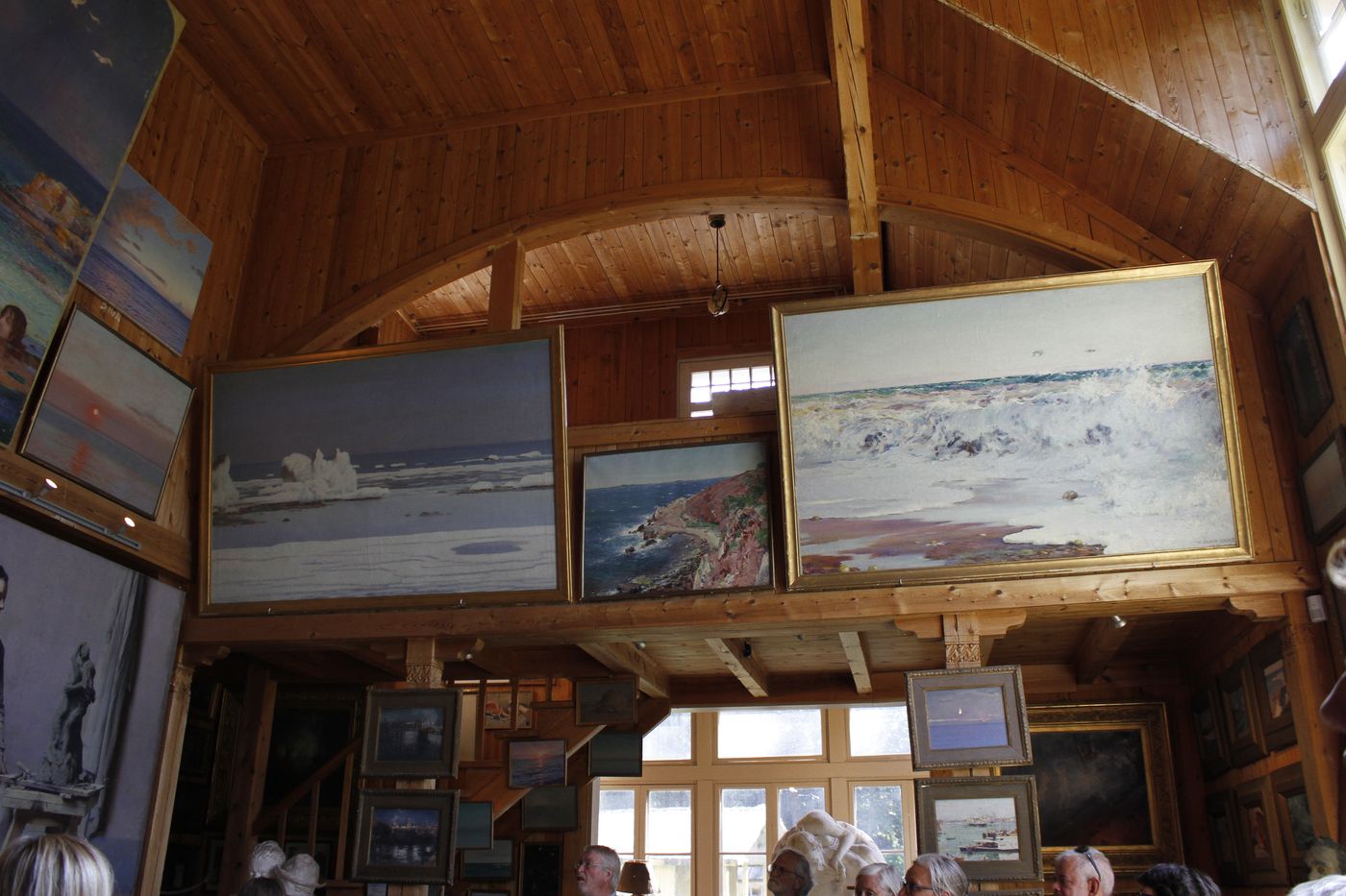 Kosan styrdes därefter till Brucebo, det omtalade konstnärshemmet utanför Visby intill stranden nära Skälsö fiskeläge. Här byggde konstnärsparet Carolina Benedicks Bruce och William Blair Bruce, hon förmögen bruksdotter från Gysinge och han målare från Canada. Här byggde man upp en stor villa med ateljé och ett flertal andra hus kring förra sekelskiftet. Hela anläggningen finns kvar i orört skick med mängder av konstverk och alla de föremål makarna Bruce hade. Detta är en fantastisk skatt, som Stiftelsen Brucebo nu förvaltar och nyligen har gjort tillgänglig. Vi fick en intressant guidning av detta enastående konstnärshem. Som avslutning drack vi kaffe nere vid strandateljén och en lång men inspirerande dag var till ända.
