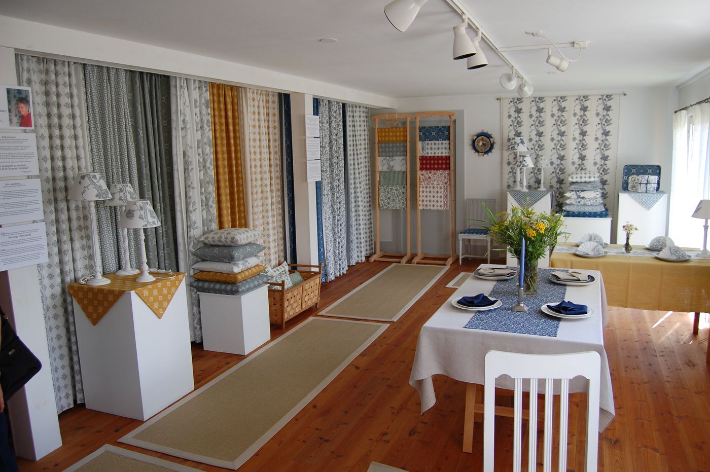 I som vanligt strålande sommarväder genomfördes hembygdsföreningens årliga bussutflykt till intressanta resmål på ön. Gunnar hade arrangerat programmet och Rolf körde som vanligt bussen. 38 personer kom med kaffekorgar till avreseplatsen vid skolplan. Resan gick först till textilkonstnären Barbro Sandell Design i Norrlanda. Barbro tog emot oss på gården och berättade kort om verksamheten och sedan gick vi in i den inredda ladugården med butik och utställningsrum. Utgångspunkten för hennes arbeten var kattuntryckaren Tobias Langs efterlämnade tryckstockar från omkring 1780, från vilka hon gjort nytryck och vidareutvecklat mönsterskatten på tyg, papper mm. Barbro visade en mångfald mönster och berättade om dessa på ett trevligt och intressant sätt. Efteråt var det många som ville köpa med sig något hem och allabeundrade de vackra sakerna i utställningsrummet. Förmiddagskaffet intogs i trädgården.