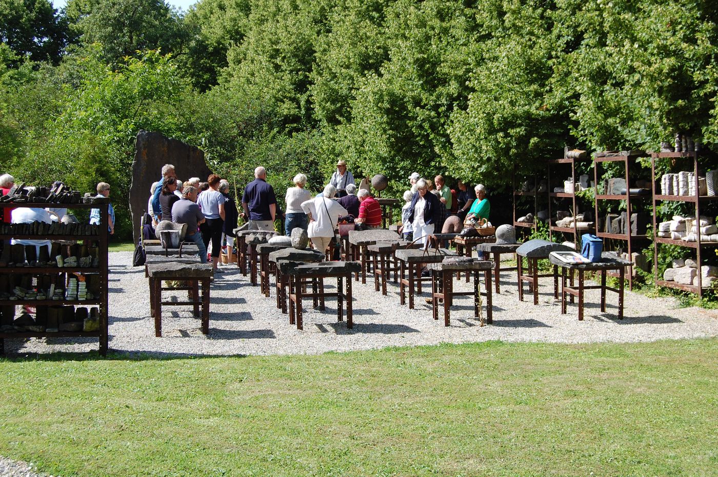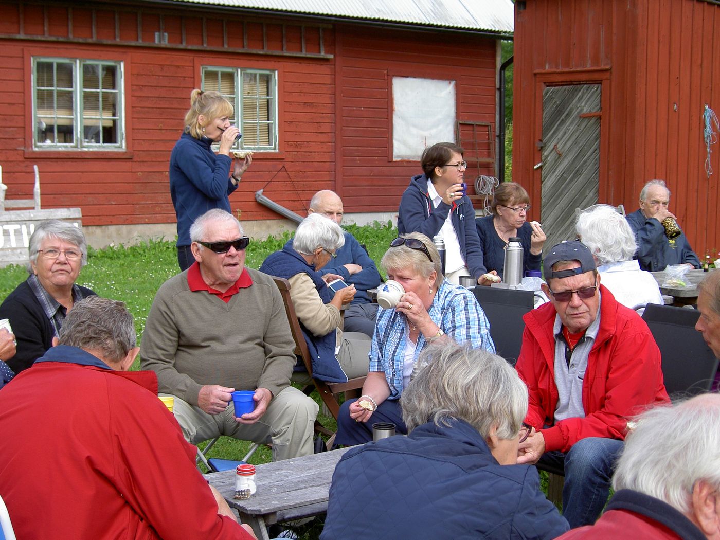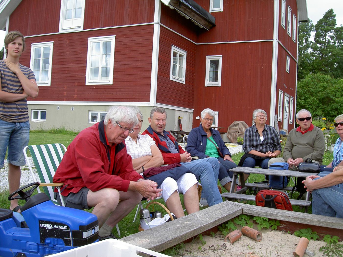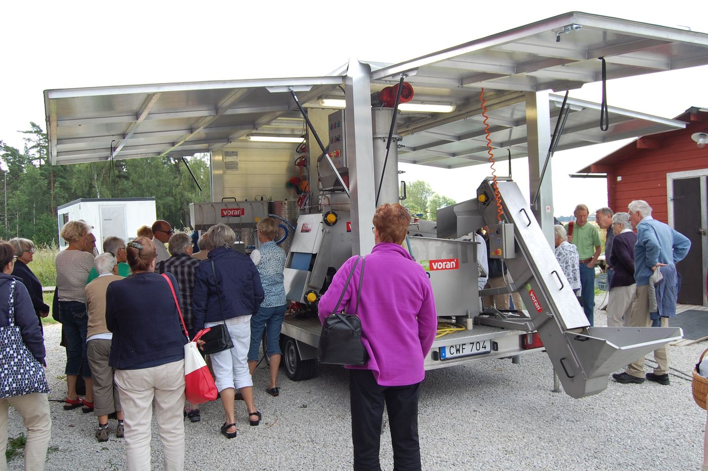 Den 1 augusti var det dags för den traditionella bussutflykten, något vi gjort varje sommar sedan hembygdsföreningen bildades 1994. Vädret var det bästa tänkbara med lagom sol och värme. Rolf Ebbesson körde oss 36 Lauboar lugnt och tryggt som vanligt. Första besöksplatsen var Hallvede Musteri i Dalhem, där ägaren Peter Brennwald med sonen Martin visade deras ett år gamla mobila musteri, det största och snabbaste i Sverige. Här kan man lämna 50 kg äpplen och få 4 bag-in box-förpackningar med must. Förmiddagskaffet intogs i trädgården.