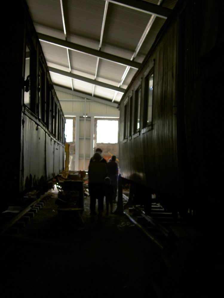 Tåget tuffade vidare genom skogen och ut på Romaslätten, släppte av passagerare vid Kungsgårdens anhalt och fortsatte sedan till Roma. Där blev det ny avstigning och under tiden flyttade man loket. Så var det ombordstigning igen, både för oss gamla passagerare och nya, tåget blev fullständigt knökfullt. Nu var vi lite försenade och tåget drog iväg med fullfart, härligt dunkande och skramlande. När vi kom tillbaka till Hesselby station i Dalhem, tog Lauboen och tågentusiasten Berni Gumauskas hand om oss och visade alla ännu icke restaurerade lok och vagnar. Det var enorma mängder som stod både i verkstäder och vagnhallar och även utomhus. Här finns det arbetsuppgifter för 100 år framåt trodde någon! Tågresan av en härlig upplevelse fylld av nostalgi.