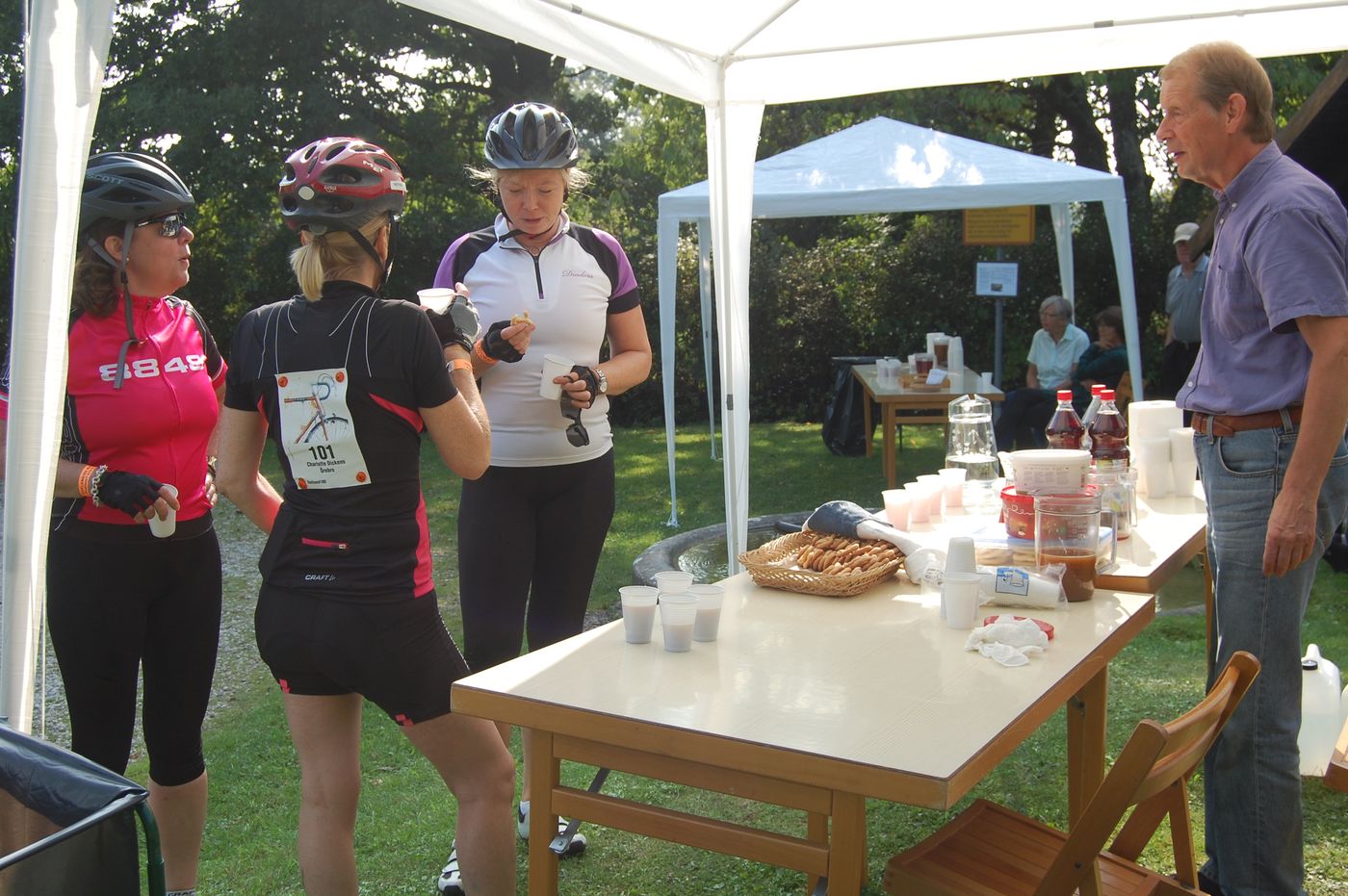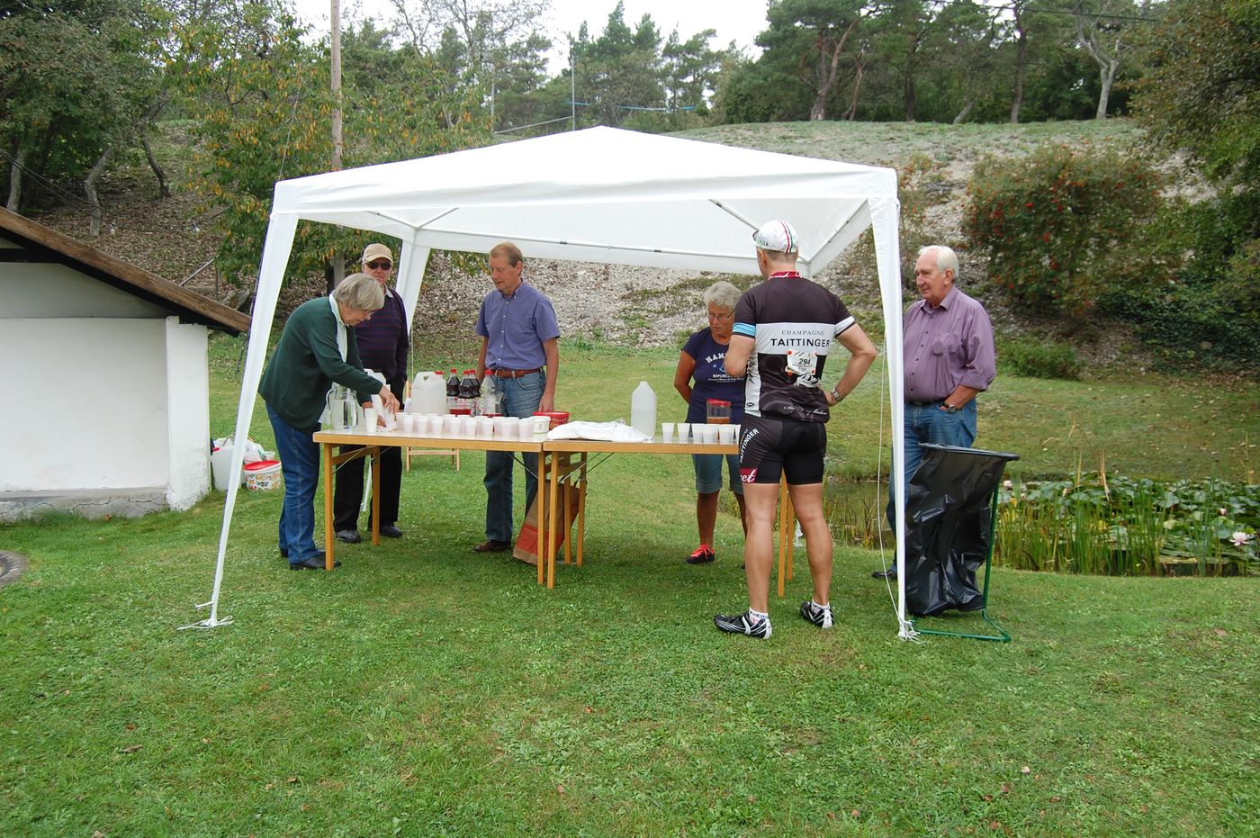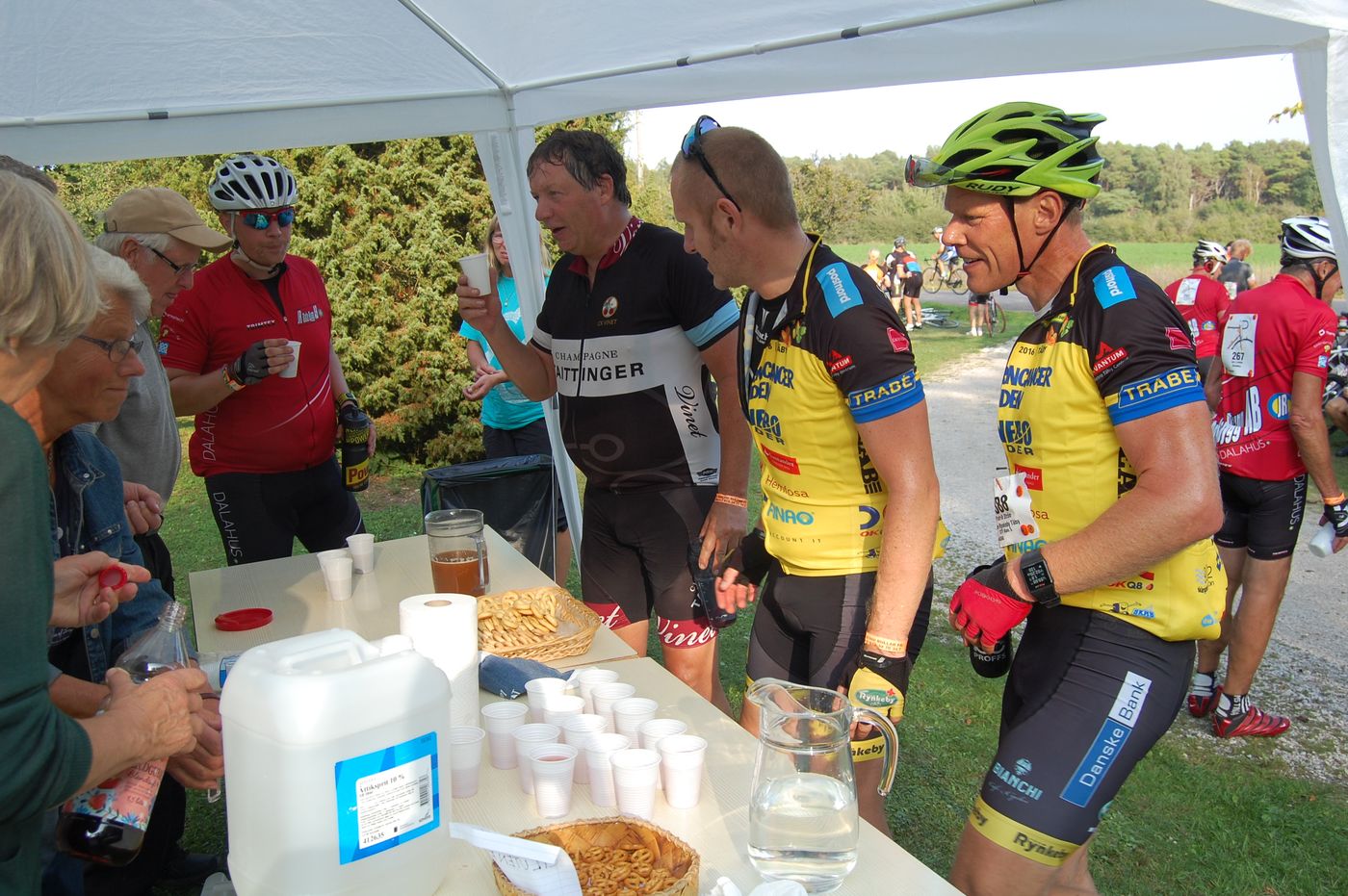 Dagen före körde vi ner ett stort antal rastplatsmöbler. På förmiddagen den 10 september skulle loppet passera Käldu och då riggade vi upp två uppsättningar bord med tak. Men taken behövdes egentligen inte, för det var jättefint sommarväder, stilla och soligt. Ett stort antal föreningsmedlemmar dukade upp drycker och bröd. Vid 12-tiden kom de första och sedan kom cyklisterna i klungor ända fram till kl 18. Dricken uppskattades livligt av de flesta, det blev bara en liten skvätt kvar. Kringlorna gick nästan helt åt också.