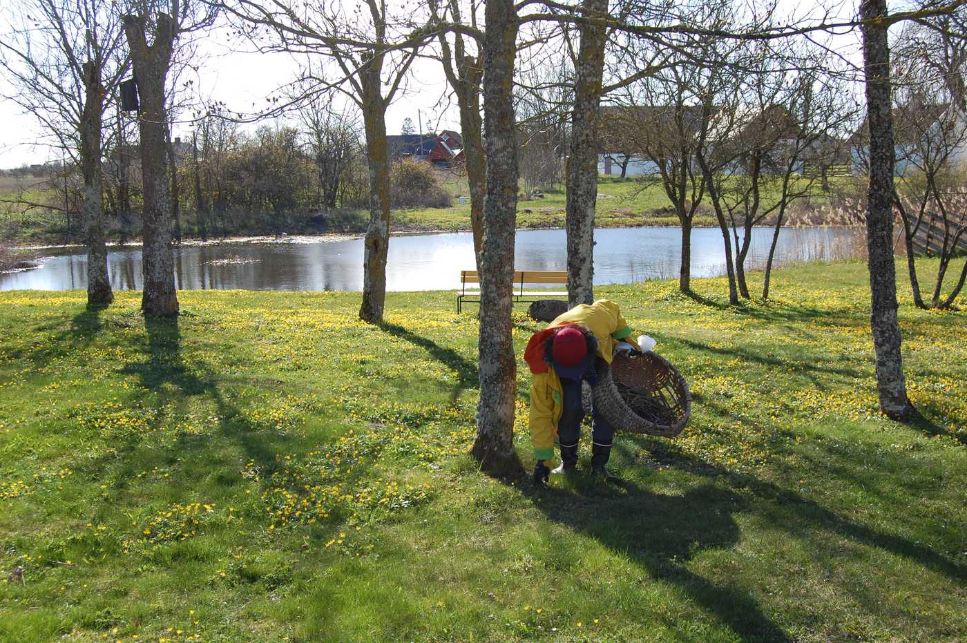 Torsdagen den 23 april fagade medlemmar från Lau hembygdsförening lunden Kluckartäppu öster om kyrkan. Det var en vacker vårförmiddag, men blåsig. Tack och lov kom vinden från rätt håll, dvs från väster, så det blåste i fagningsriktningen. Det var inte så mycket löv, det mesta hade blåst bort och låg längs med tunarna där det var lätt att räfsa ihop och köra bort det. I övrigt var det bara att ta hand om småkvistar och pinnar som blåst ner från träden under vintern. Jobbet var snart undanstökat och arbetsgänget kunde njuta av kaffe och kaka som Gittan ordnat. Det var en trevligt att sitta och prata en stund och se hur fin Kluckartäppu hade blivit.