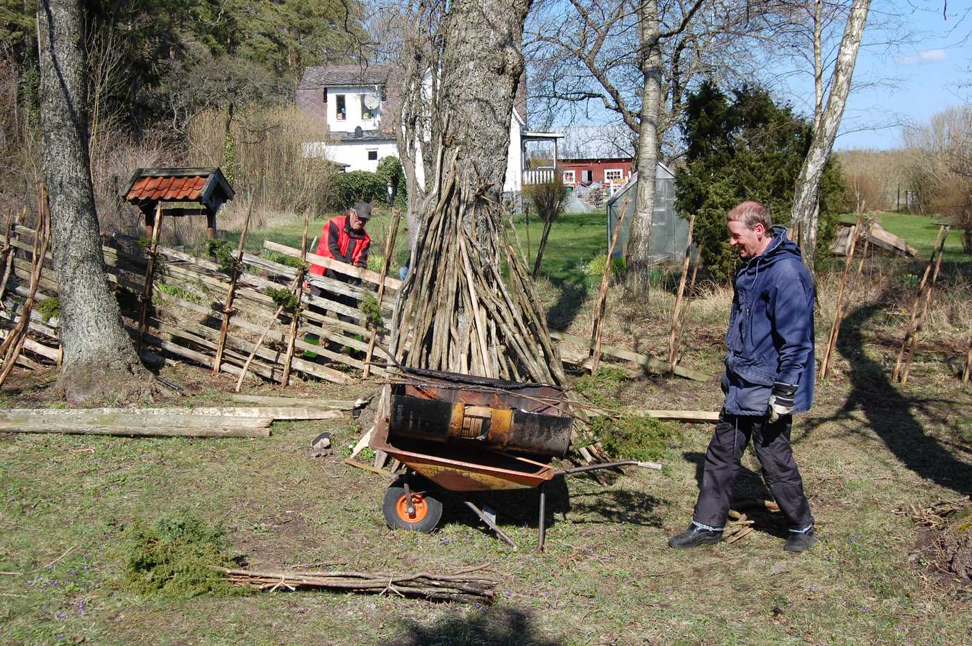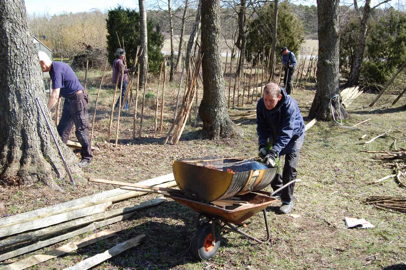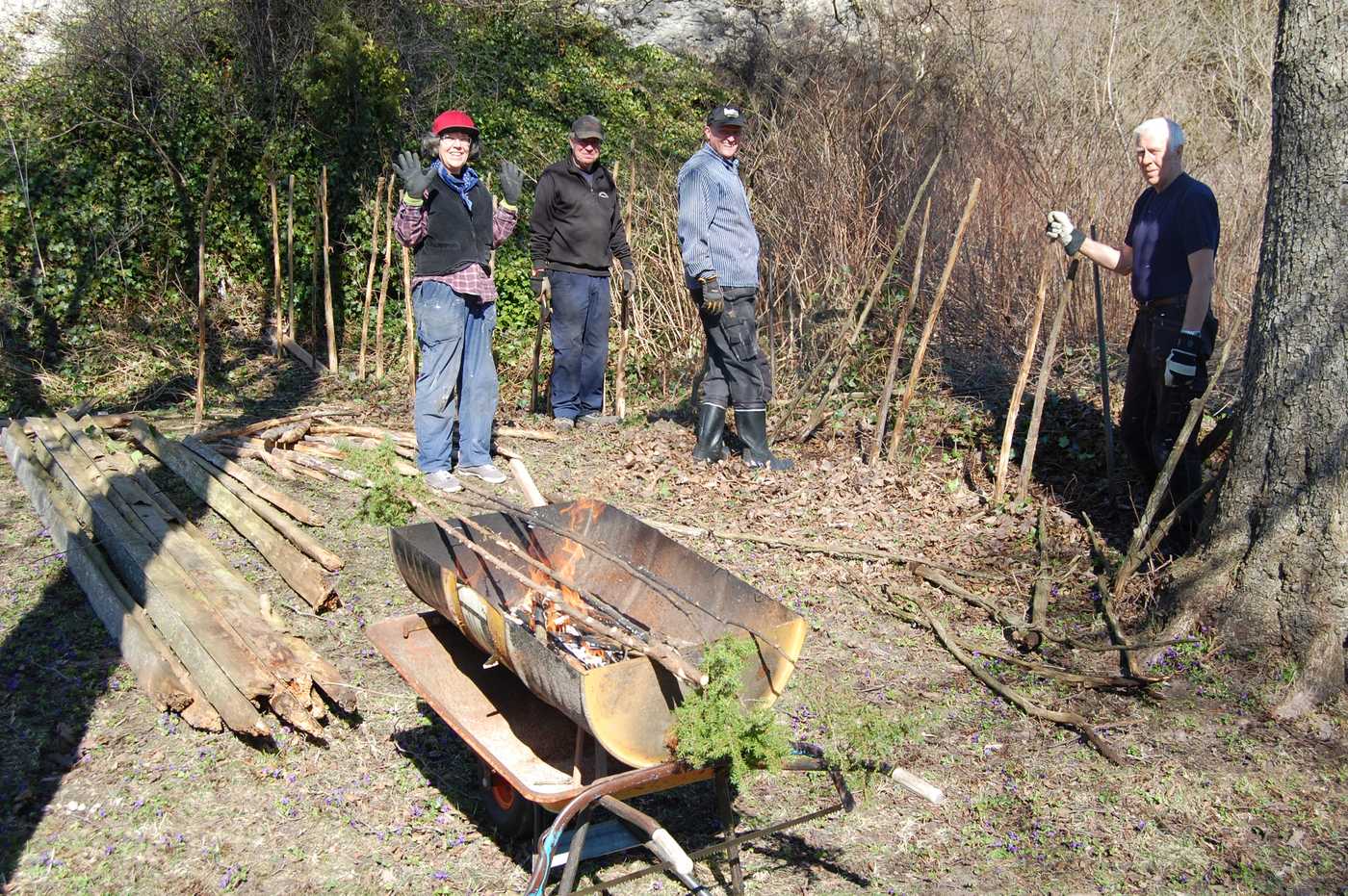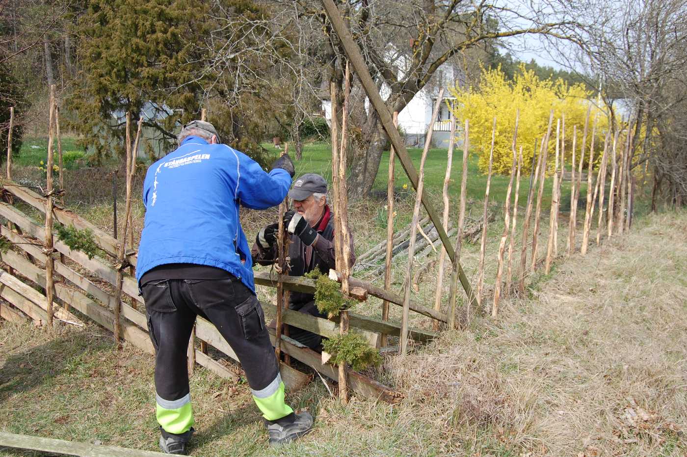 Under tre halva lördagar i april förnyades bandtunen vid Lau käldu. Den sattes upp för 20 år sedan, men nu hade den börjat bli dålig. Många störar hade murknat, en del trolar (gärdsel) likaså och de flesta bandarna hade gått sönder. I strålande vackert vårväder alla arbetsdagarna sattes tunen om av Rolf Lindström som har tomten mitt emot och av föreningsmedlemmar. Nya störar hade köpts in och mängder av bandar hade Börje huggit och knutit ihop i buntar, som han lagt i näckrosdammen, så de inte skulle torka. Trolarna kunde till stor del återanvändas, men en del nytt virke hämtades från lagret på backarna.