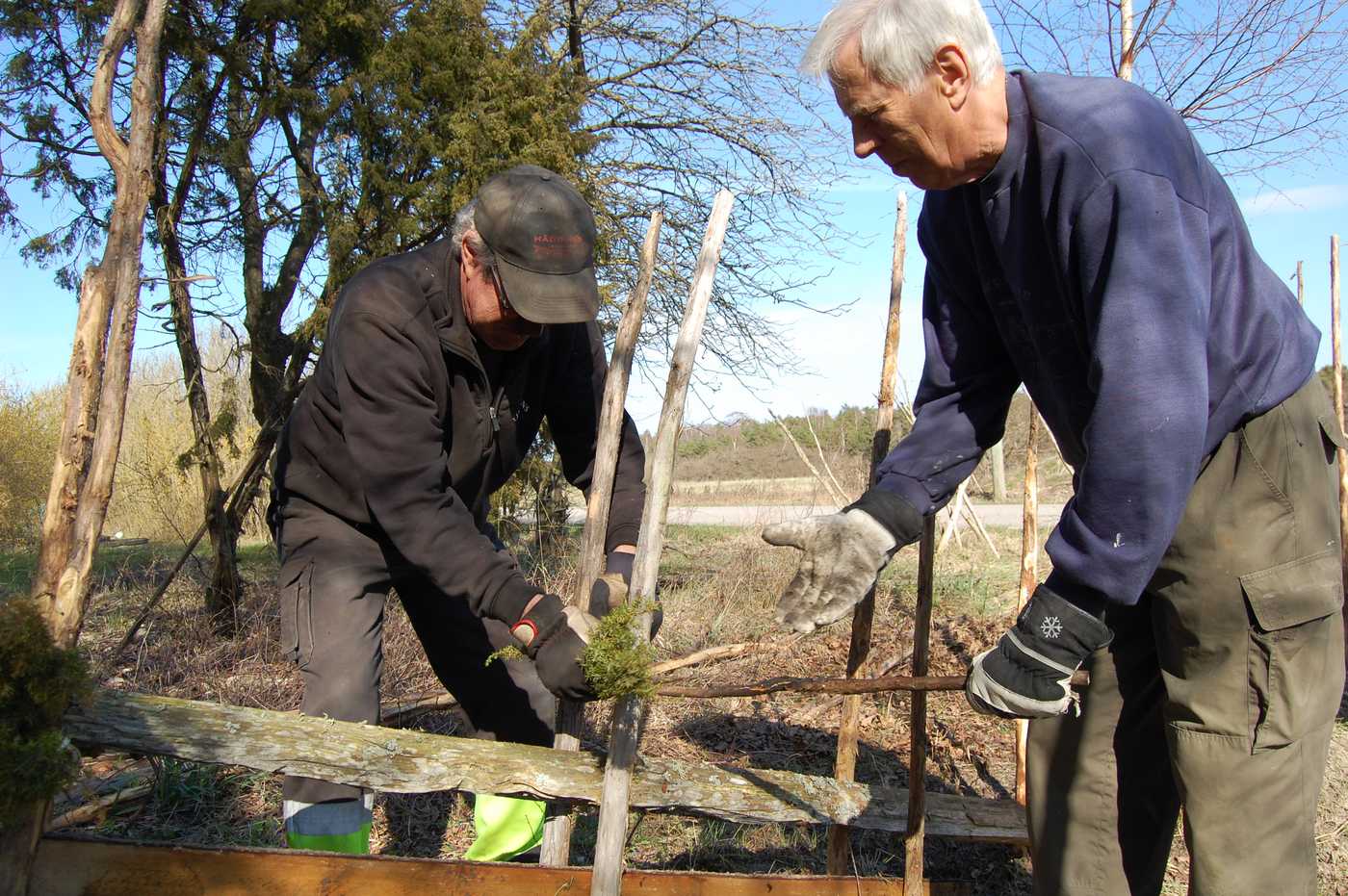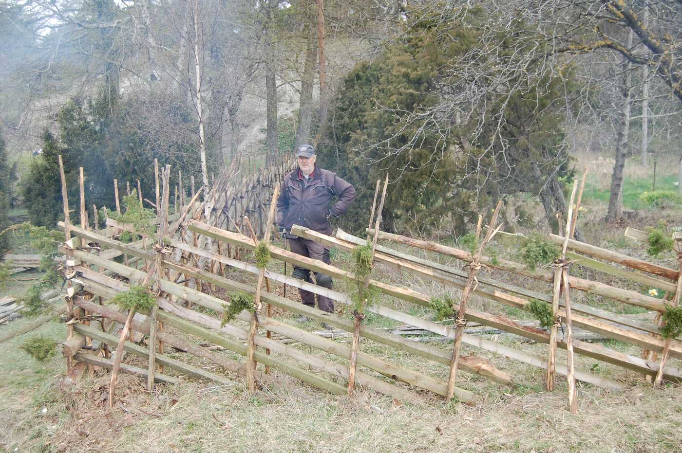 Det är mycket pyssel med att få tunen stark och jämnt lagd, särskilt gardshuvudet vid hörnen är knepiga. Det var mycken trevlig diskussion om detaljutförandet. Alla blev nöjda med resultatet och nu kan både Lauboar och hitresta njuta av den vackra tunen när de hämtar vatten vid Käldu. De som arbetade med tunen njöt också av kaffepauser, särskilt den sista, då Nilla Lindström kom med jättesmarriga mjuka kakor!
