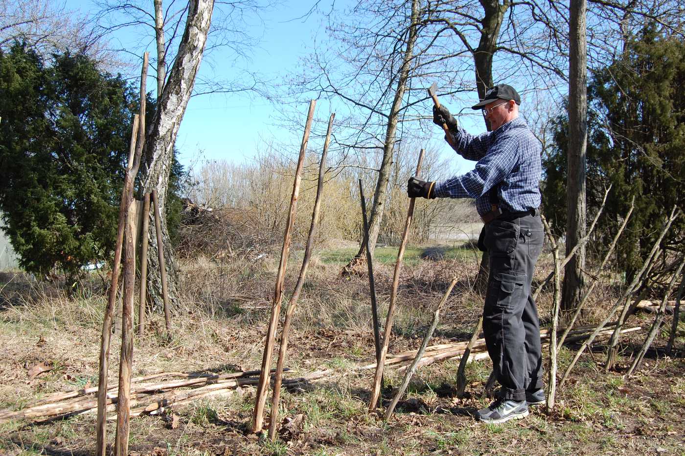 Arbetet inleddes med att den gamla tunen revs och virket sorterades upp. De gamla störarna fick bli ved till bädbaljan, där bandarna skulle värmas, så att de blev så mjuka att de gick att knyta med. Sedan sattes det upp ny stör och arbetet med att bäda (värma) bandar, knyta i dem och lägga i trolar allt efter hand kom igång. Det är ett urgammalt hantverk som troligen härstammar från yngre stenåldern, när man började med jordbruk och man måste hägna in sina ägor. Det här var ett utmärkt tillfälle att få inblick i och pröva på hur man töinar = sätter upp en bandtun.