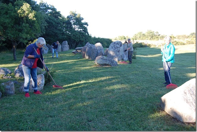 Hembygdsföreningen hade sedvanlig trimning vid Bandeläins Täppu måndagen en vecka efter midsommar, då ett 10-tal medlemmar slog och räfsade bort gräset både uppe vid vägen och nere vid skeppssättningarna. Med tre trimmare och många räfsare gick jobbet fort, så det blev gott om tid till kaffedrickning i den vackra sommarkvällen och vi kunde njuta av Gittans bakverk.