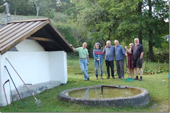 En vecka senare var det dags att snygga till vid Laus Käldu inför Basaren på lördagen. Christina Å hade redan i förväg klippt rent hela branten från skott av tynne, ask mm, så detta besvärliga arbete var redan gjort. Vi trimmade och räfsade både uppe och nere och körde sedan bort skräpet, det var mindre än vanligt. Sedan var det kaffe också denna gång, vilket Anne-Marie hade ordnat.